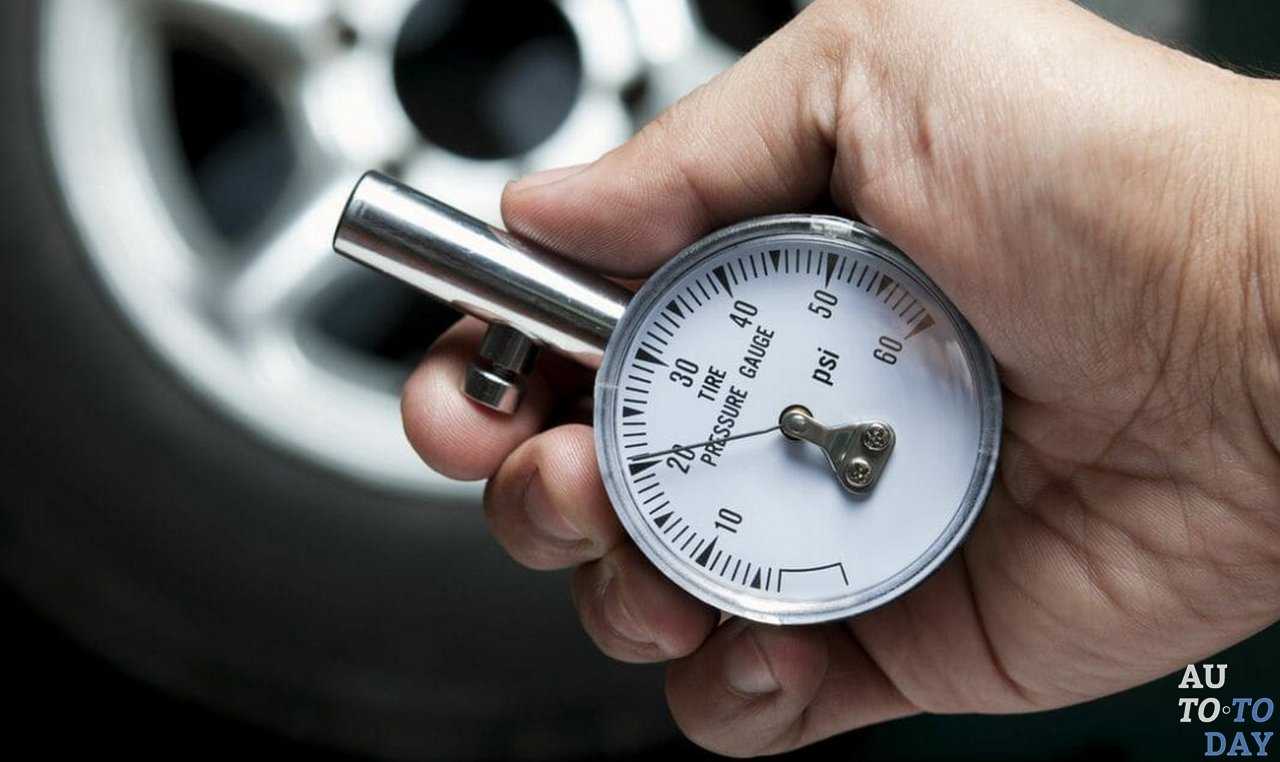 Провести измерение давления в покрышках можно при помощи специального прибора — манометра. Если неисправность кроется в разнице параметров, то её легко исправить, подкачав нужную шину.