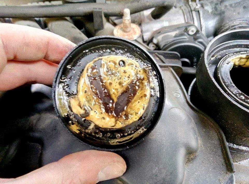 - на крышке маслозаливной горловины имеется конденсат или светло коричневая эмульсия.