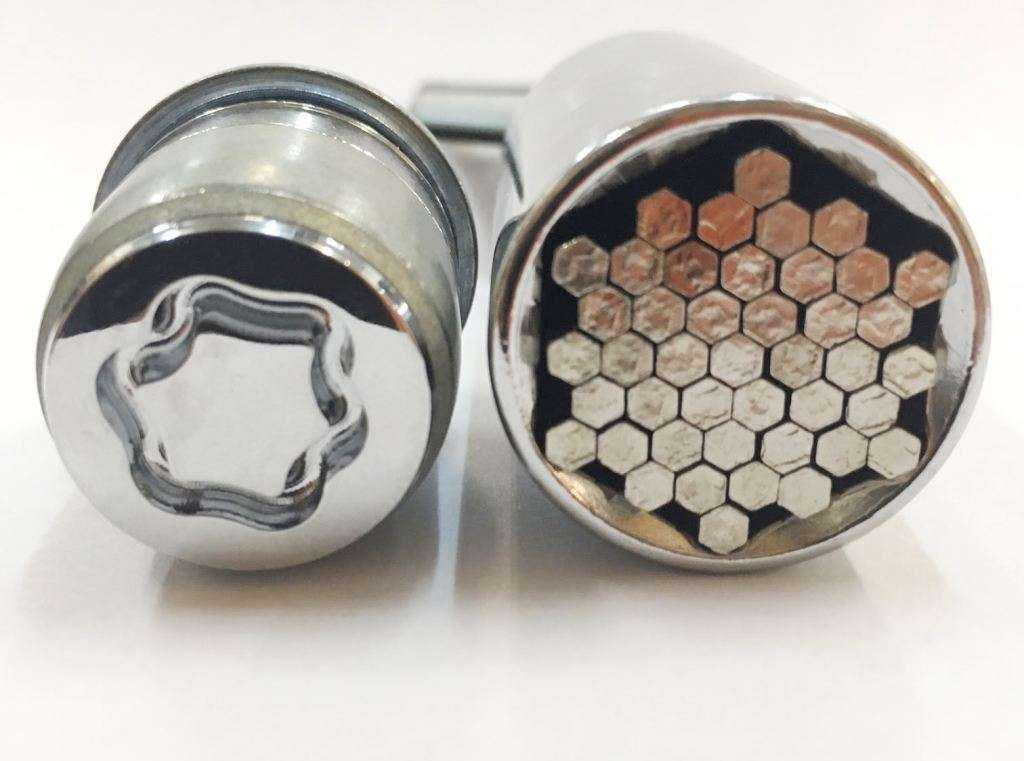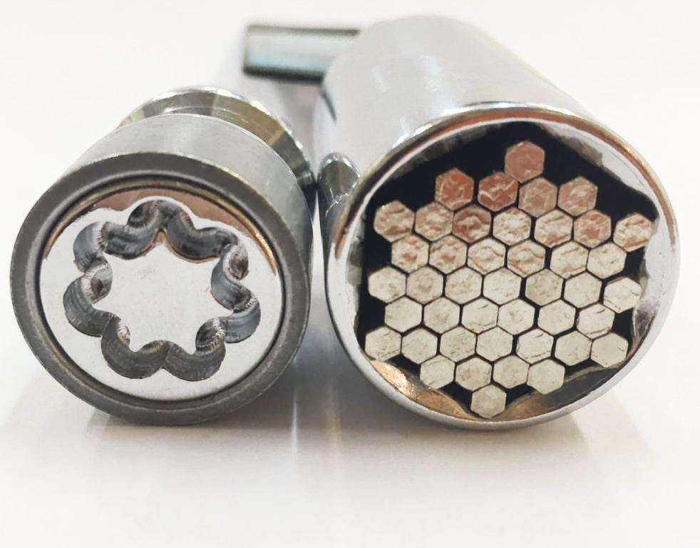 Gator Grip – универсальная насадка для шуруповерта или дрели. Внутри стоят 54 мелких подпружиненных штифта. Предназначена для откручивания любого крепежа с боковыми фланцами.