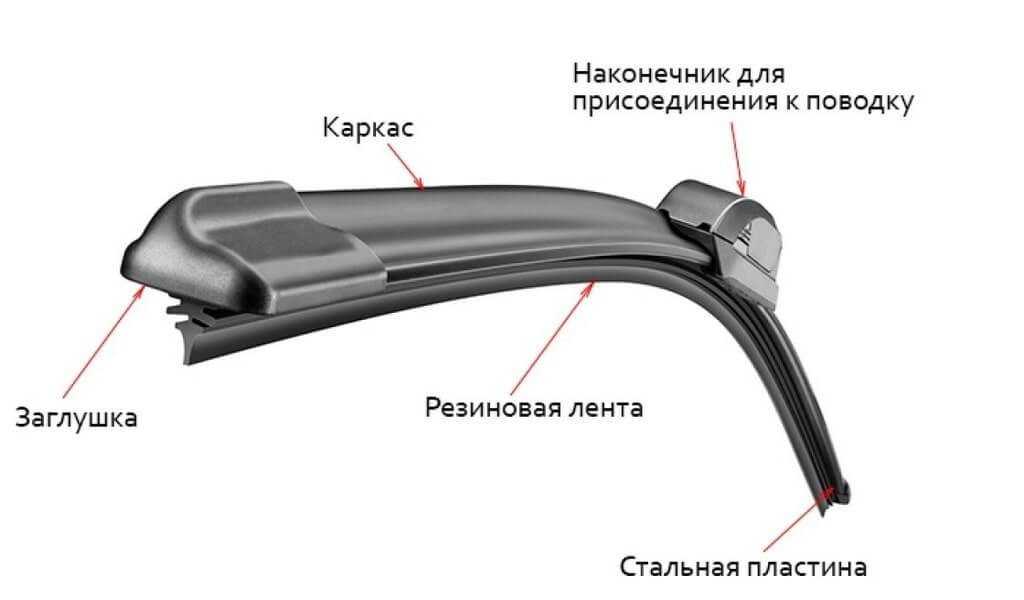 Каркасные дворники. Каркасные (или иначе – летние) дворники – это классическая и к тому же самая распространенная модель стеклоочистителей. Конструкция представляет собой систему «коромысел» с шарнирами, за счет которых резиновая лента плотно прилегает к выпуклой стеклянной поверхности и позволяет отлично очищать ее от загрязнений. До 2000 г. шарниры оси у классической модели изготовлялись из металла, но данный материал совершенно не оправдывал ожиданий – легко замерзал и очень быстро изнашивался. А потому технология с применением металлических конструкций на сегодняшний день абсолютно устарела.