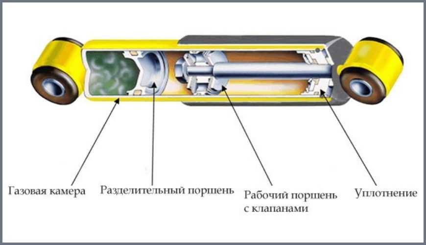 Кроме того, конструкция с двумя резервуарами у двухтрубных амортизаторов с перепускным клапаном негативно отражается на надежности узла, т. к. при возросших нагрузках (неровная дорога, перегруженный автомобиль) специальная жидкость попросту перегревается и перестает выполнять свои основные функции.