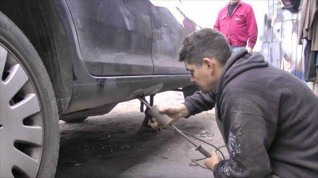 Как выправить вмятину на пороге автомобиля с помощью обратного молотка