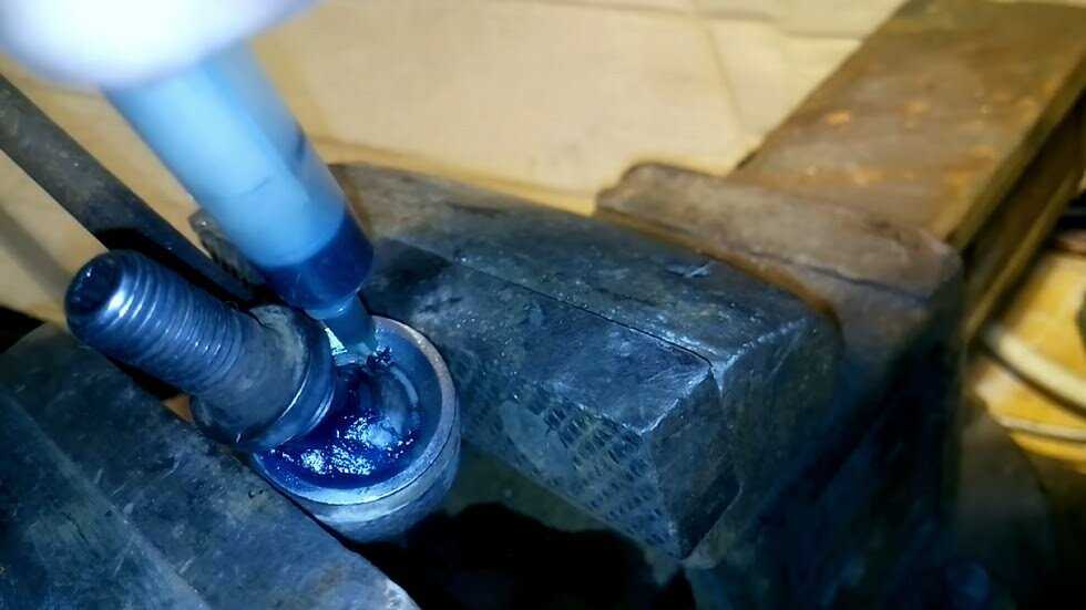 Шарниры равных угловых скоростей набивают смазкой, предназначенной именно для них, а шаровые опоры и наконечники наполняют ШРБ-4.