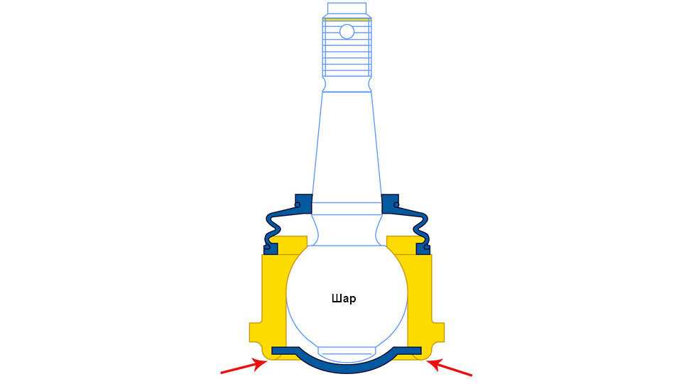 Шаровая опора это шарнирный механизм, слабое место — это полимерные вставки, в которых ходит металлический палец, со сферическим наконечником. Если рвется пыльник, то влага, пыль и грязь, попадает между шаровым механизмом и полимерной вставкой, тем самым разрушая опору изнутри. Она начинает стучать, уже через 500 – 1000 километров.