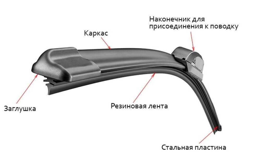 каркасные классические стеклоочистители — самый распространенный тип. В систему входят каркас с коромыслами и резиновые накладки. Именно такой механизм частенько доставляет проблемы. Его эксплуатационные качества (особенно на высокой скорости в зимний период) далеки от высоких показателей;