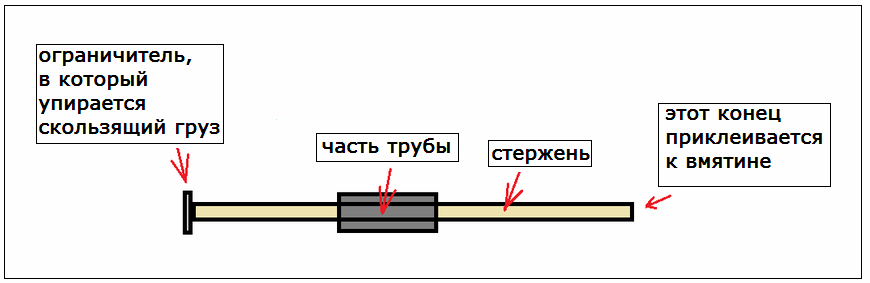 На иллюстрации можно увидеть основную концепцию устройства молотка обратного действия. Вытягивать вмятину нужно до того, как клей застынет слишком сильно. Потому что, когда клей застывает, то становится хрупким и раньше времени отрывается от поверхности при вытягивании. Нужно нанести клей, надавить стержень на него и подождать охлаждения, после чего начать скользить частью трубы (грузом) по стержню. Обратным молотком удобно выправлять маленькие и средние вмятины.