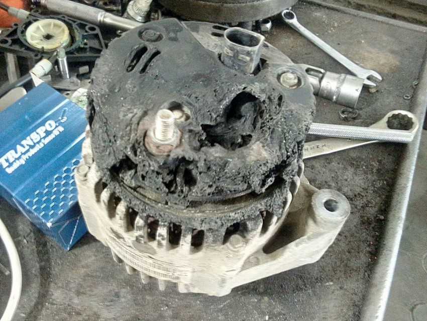 Если таких луж вам не найти, то можно использовать другой проверенный способ сжечь генератор: когда моете двигатель, старайтесь как можно обильнее поливать жидкостью генератор, чтобы она попала во внутрь генератора. Как только это у вас получится, даже не пытайтесь его просушить, как можно скорее запустите двигатель и включите побольше нагрузок – освещение, музыка, кондиционер и т.д. Скоро появится и результат.