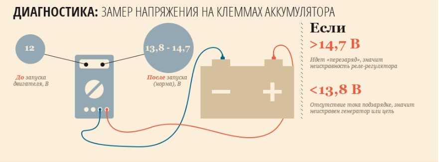 Схема замера напряжения на клеммах АКБ