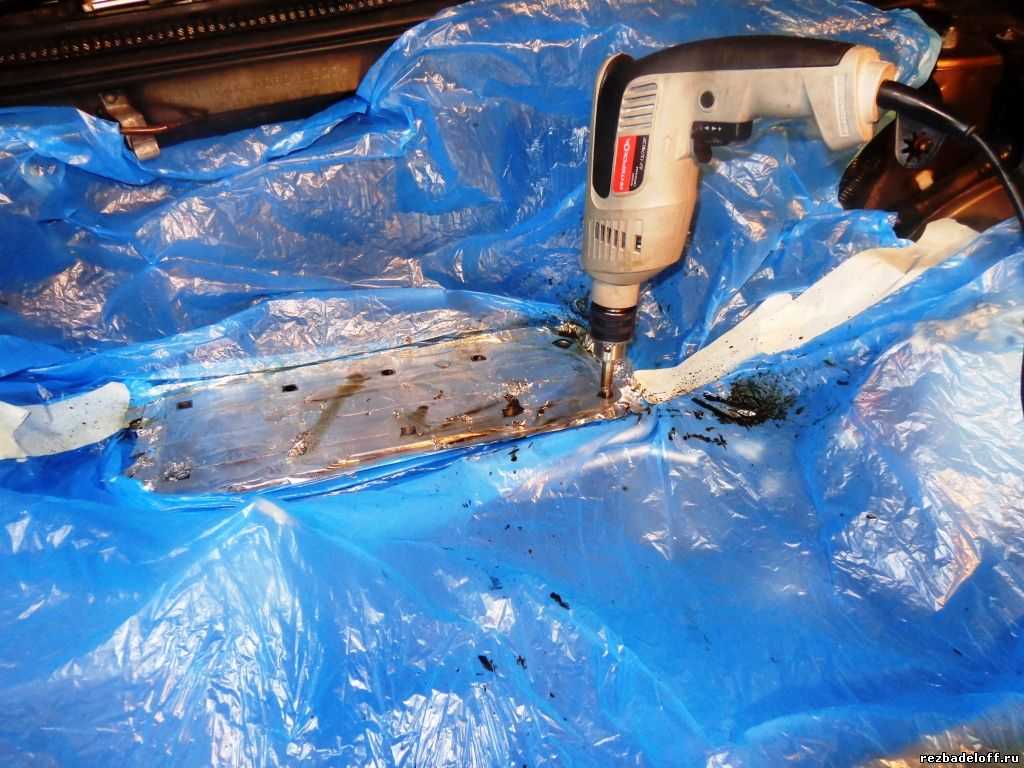 Иногда этот дефект возникает в отверстии, к которому крепится петля капота. Поступаем точно так же, как и с выхлопным коллектором.