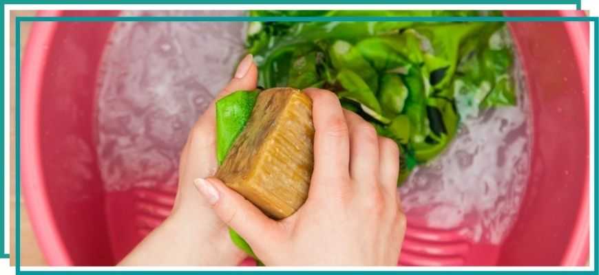 - Замочить вещи в теплой мыльной воде. Всю одежду после работы с обезжиривателем для металла, пластика и стекла необходимо опустить в таз с водой минимум на полчаса, а затем постирать. Лучше использовать хозяйственное мыло, которое перебивает запах растворителя уайт-спирит. Постиранные вещи стоит прополоскать в уксусном или содовом растворе.