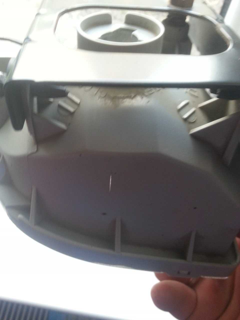 В общем первый раз как туманка набралась наполовину водой, снять ее не смог. Выкачал воду шприцем и забил. Не прошло и месяца как в туманке оказалось опять полно воды. И сегодня с горем пополам, обдирая руки (потому что лень было снимать защиту) я все-таки снял туманку. После тщательного осмотра ничего не нашел, уже думал стекло переклеивать. Потом совершенно случайно обнаружил маааленькую трещинку сверху.
