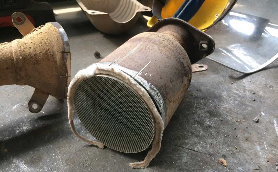 - Демонтировать нейтрализатор с машины и убедиться в отсутствии разрушенных сот.