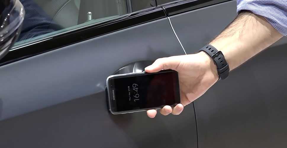 - В этот момент свой телефон близко поднести к автомобильной двери.